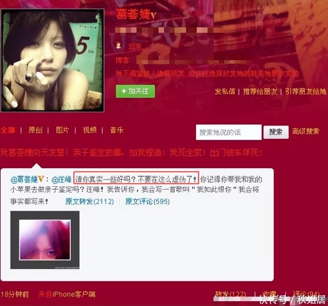 2011月,葛荟婕在社交平台发声控诉汪峰虚伪冷漠。