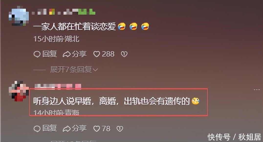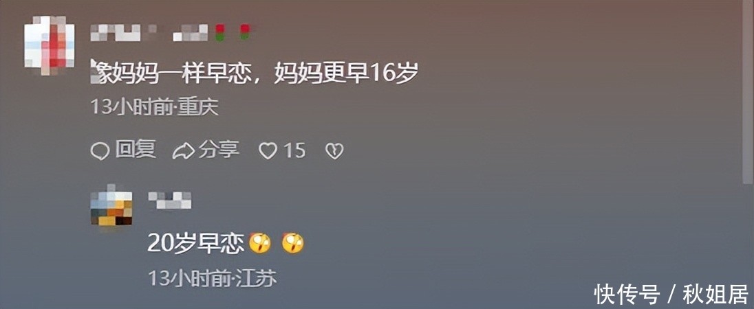 有人冷嘲热讽:“和妈妈一样早恋,甚至晚了两年。”
